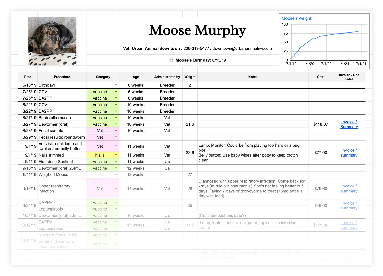 - The Health & Grooming sheet becomes your source of truth for all medical history.